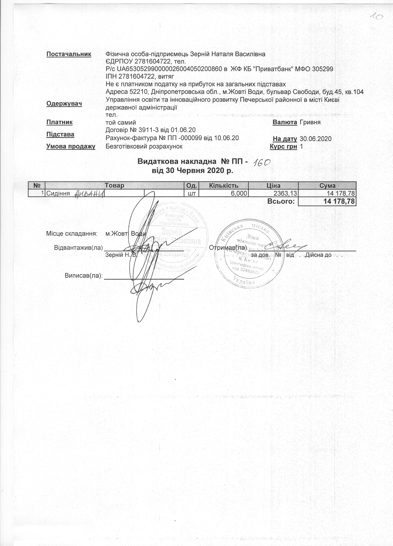 Інформація про отримані у 2019 році матеріальні цінності на побутові потреби (дріб’язок) за кошти місцевого бюджету для закладу загальної середньої освіти № 51 Печерського району м. Києва