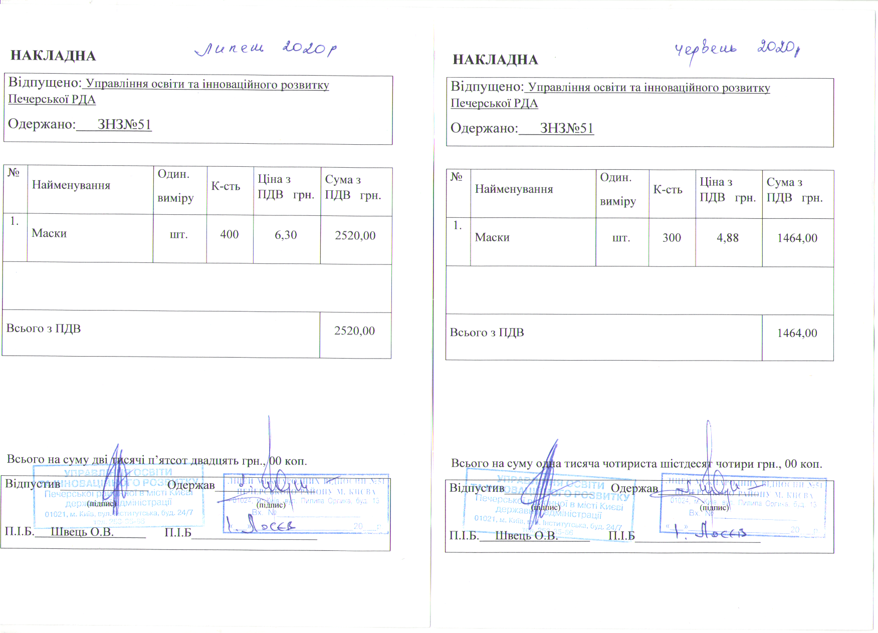 Інформація про отримані у 2019 році матеріальні цінності на побутові потреби (дріб’язок) за кошти місцевого бюджету для закладу загальної середньої освіти № 51 Печерського району м. Києва