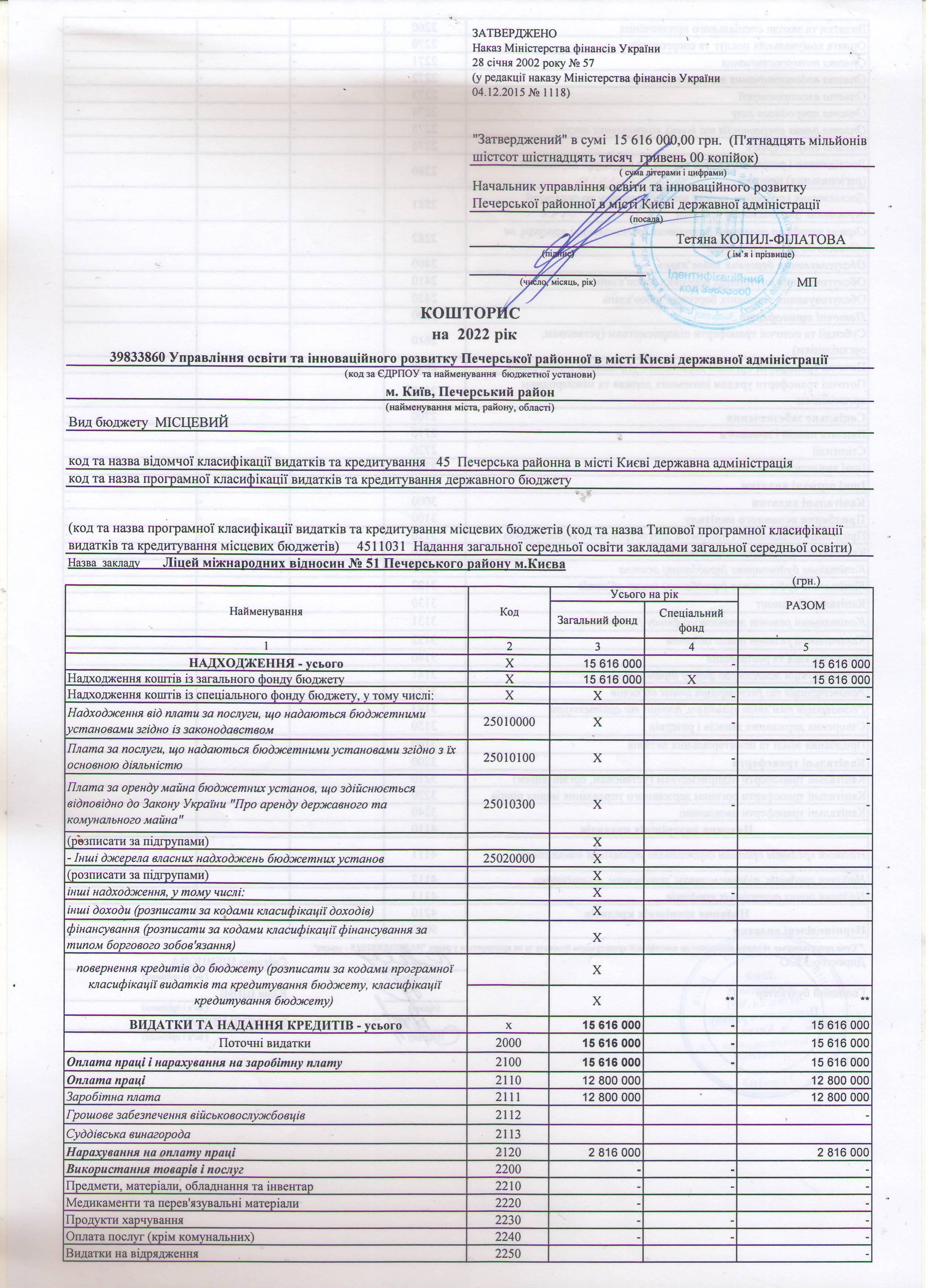Ліцей міжнародних відносин № 51 оприлюднює інформацію щодо прозорості та інформаційної відкритості діяльності навчального закладу.
