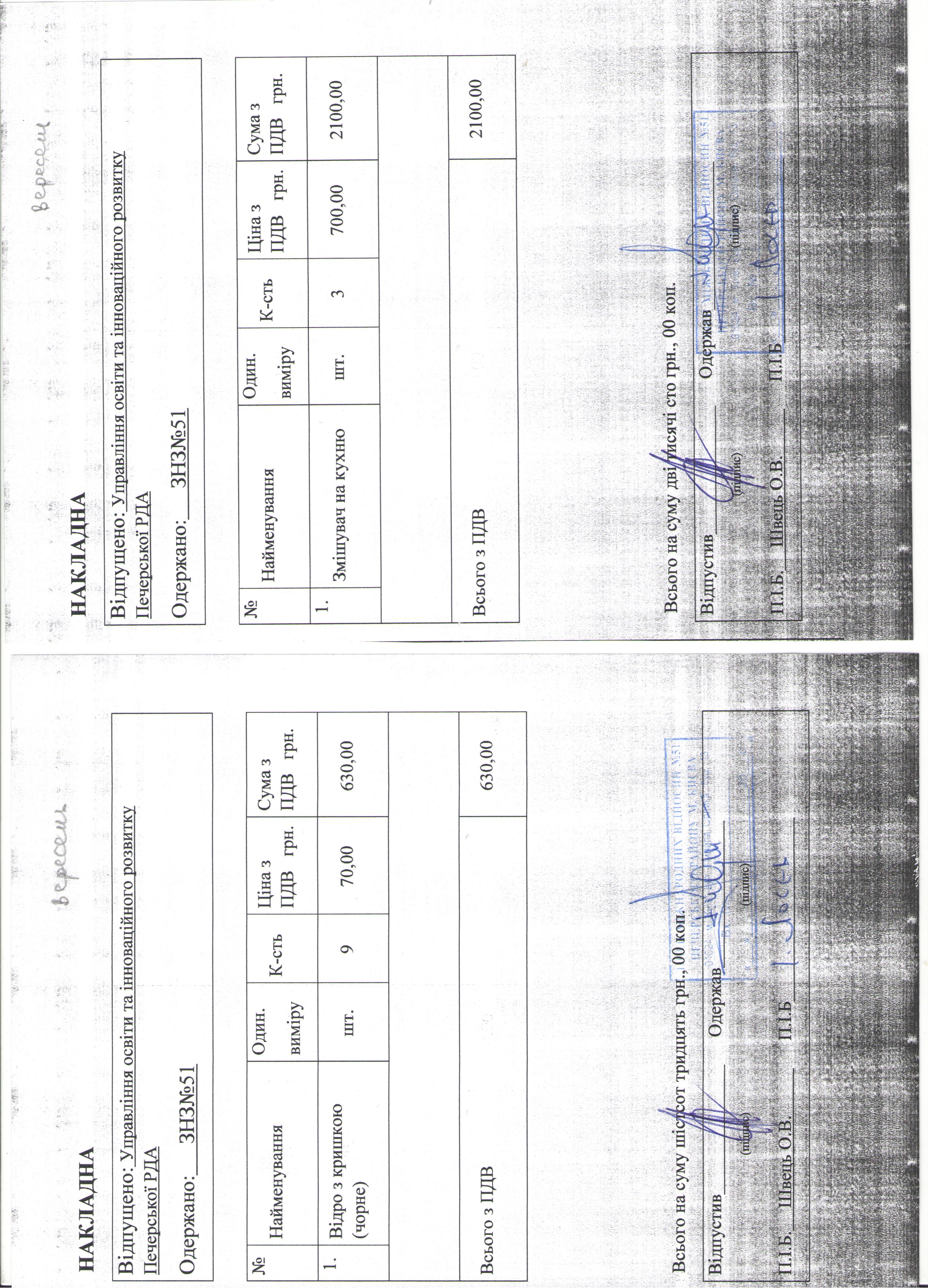 Інформація про отримані у 2019 році матеріальні цінності на побутові потреби (дріб’язок) за кошти місцевого бюджету для закладу загальної середньої освіти № 51 Печерського району м. Києва
