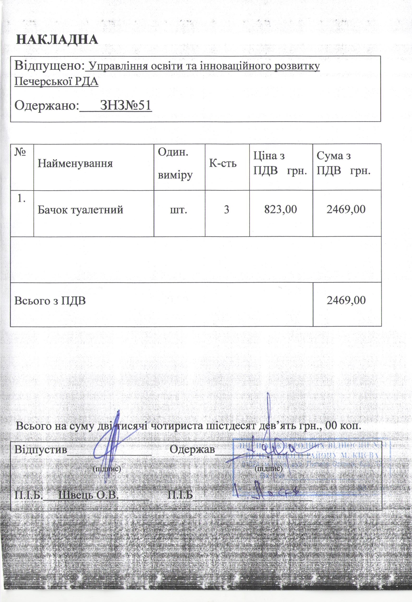 Інформація про отримані у 2019 році матеріальні цінності на побутові потреби (дріб’язок) за кошти місцевого бюджету для закладу загальної середньої освіти № 51 Печерського району м. Києва