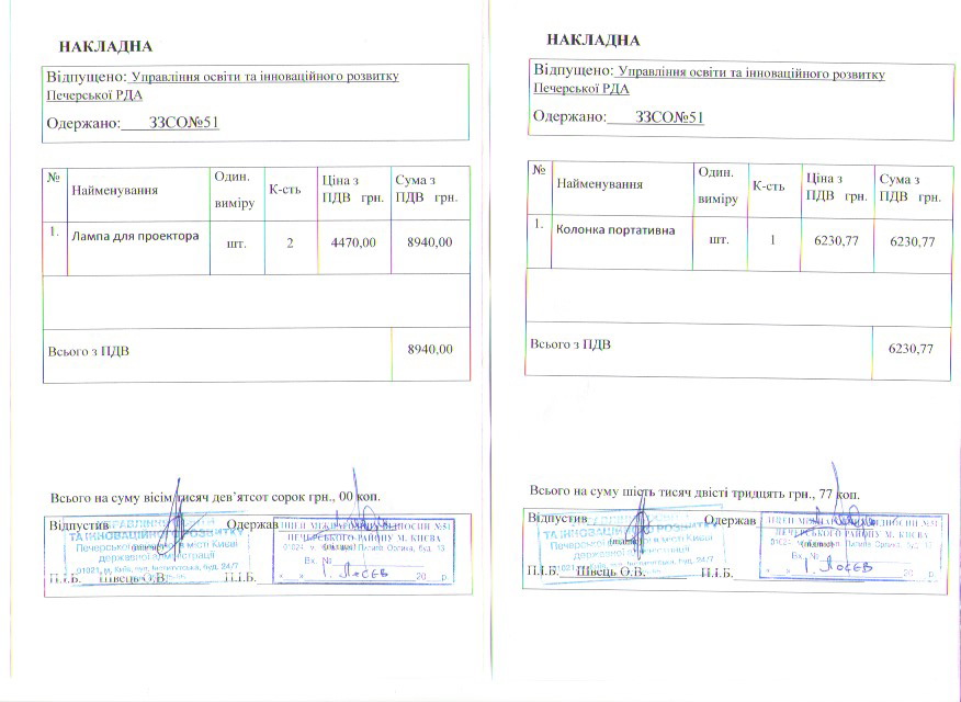 Інформація про отримані у 2019 році матеріальні цінності на побутові потреби (дріб’язок) за кошти місцевого бюджету для закладу загальної середньої освіти № 51 Печерського району м. Києва