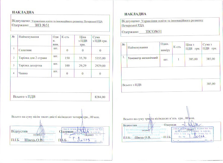 Інформація про отримані у 2019 році матеріальні цінності на побутові потреби (дріб’язок) за кошти місцевого бюджету для закладу загальної середньої освіти № 51 Печерського району м. Києва