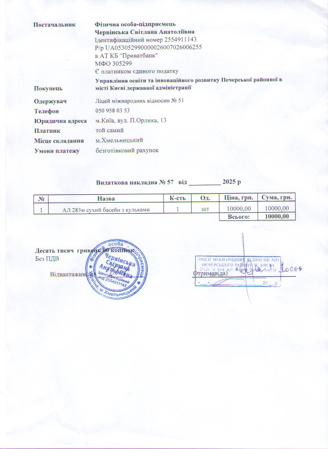 Інформація про отримані у 2019 році матеріальні цінності на побутові потреби (дріб’язок) за кошти місцевого бюджету для закладу загальної середньої освіти № 51 Печерського району м. Києва