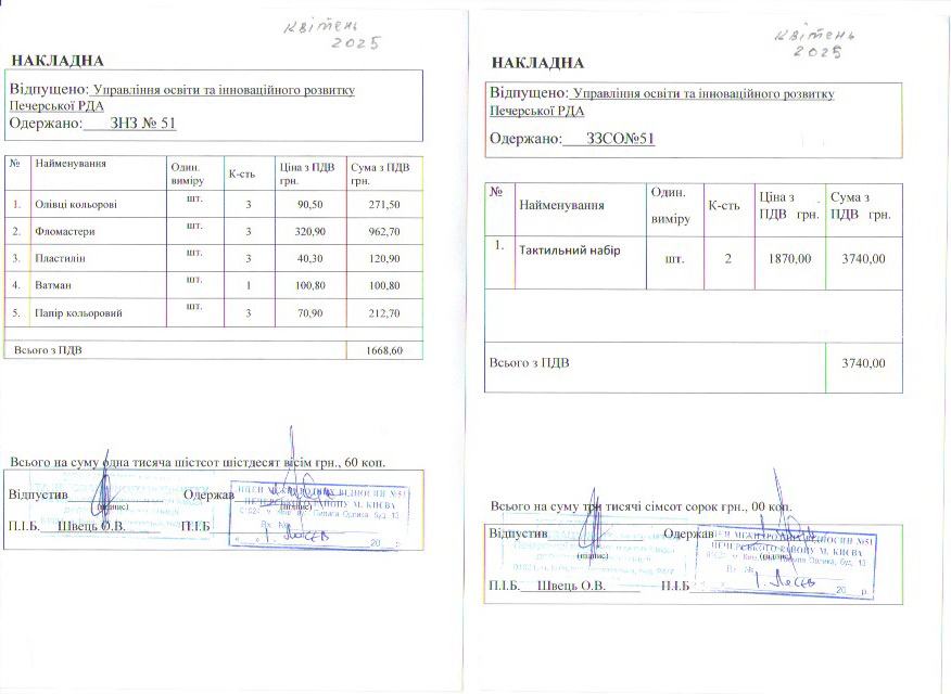 Інформація про отримані у 2019 році матеріальні цінності на побутові потреби (дріб’язок) за кошти місцевого бюджету для закладу загальної середньої освіти № 51 Печерського району м. Києва