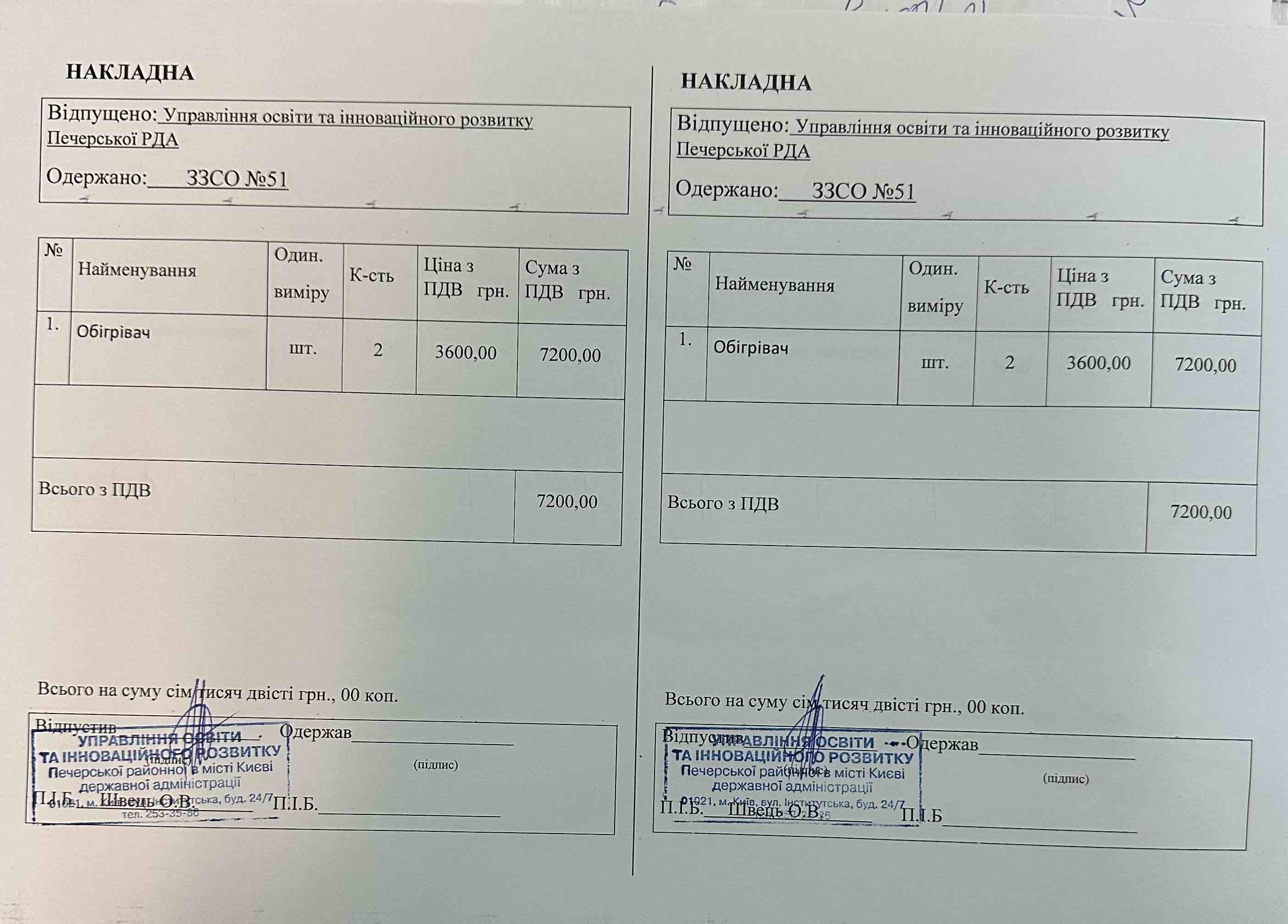 Інформація про отримані у 2019 році матеріальні цінності на побутові потреби (дріб’язок) за кошти місцевого бюджету для закладу загальної середньої освіти № 51 Печерського району м. Києва